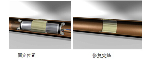 原理:點(diǎn)狀樹脂固化修復(fù)技術(shù)是一種排水管道非開挖局部內(nèi)襯修理的方法,其大致原理與CIPP整體修復(fù)相同,不同的是其只是在局部增添一個(gè)內(nèi)襯,起到止漏、局部增加老管道結(jié)構(gòu)強(qiáng)度等作用。修復(fù)時(shí),將涂有樹脂的毛氈用修復(fù)器使之緊貼原管道,然后利用水或者蒸汽方法加熱固化。